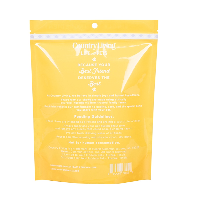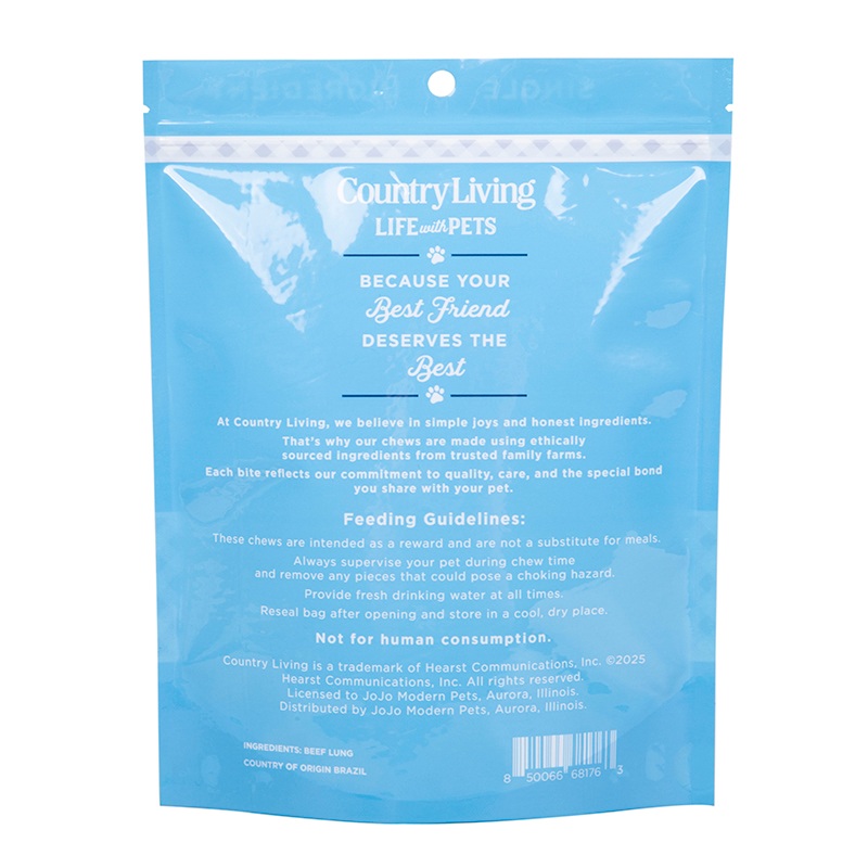 O desempenho de vedação é confiável, a abertura do saco é equipada com componentes autovedantes de alta qualidade, permitindo uma abertura suave e um fechamento hermético. Mesmo após múltiplos usos, ele ainda pode manter um bom efeito de vedação, evitando efetivamente a entrada de umidade e ar externos e reduzindo o risco de oxidação e deterioração da ração para cães. O material é flexível e resistente a rasgos, tornando-o menos sujeito a danos durante o uso e manuseio diário, e capaz de lidar com diversos cenários comuns durante o armazenamento e transporte. Além disso, a superfície lisa não é propensa ao acúmulo de poeira, tornando a limpeza e a manutenção muito mais convenientes.